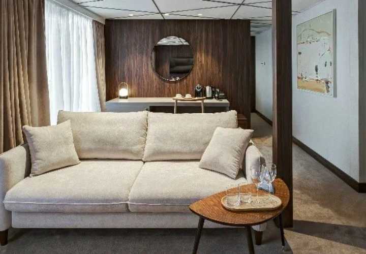 Оба теплохода относятся к классу “Водоход.Люкс” (с современными дизайнерскими интерьерами и сервисом пятизвездочного отеля) и эксплуатируются с 2020 года. Мебель в каютах создается вместе с отделкой, и многие элементы являются встроенными. Заменить ее сложнее, а обеспечивать высокий уровень качества — необходимо. Поэтому использовались долговечные материалы, и, согласно требованиям, действующим в судостроении, одним из рекомендованных материалов является HPL, технология которого была разработана еще в СССР.
